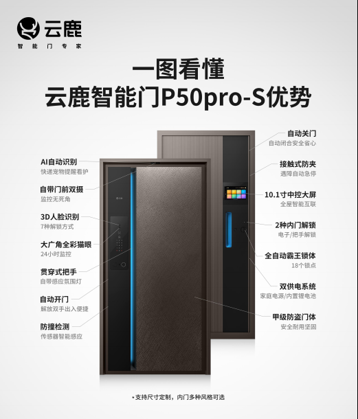 入户门终于选好了,我当初挑门的时候可没少做功课,对比了市面上各种智能门,最后选了云鹿这款P50Pro-A-S能自动开关门的双摄智能门!
